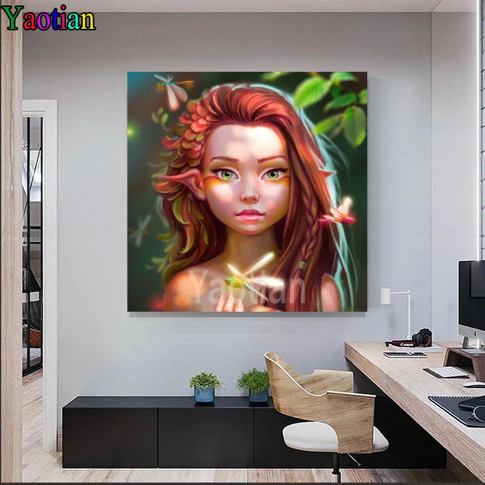 Мультфильм Эльф девушка Стрекоза DIY 5D алмазная картина полный квадрат/Круглая Мозаика Стразы Вышивка крестиком Стразы