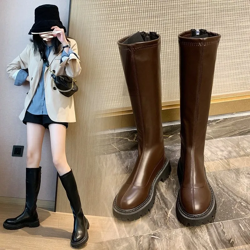 Женские ботинки до середины икры, Модные Винтажные ботинки на платф...