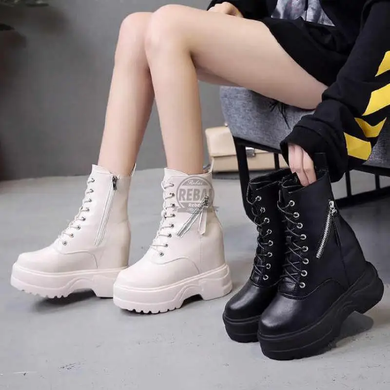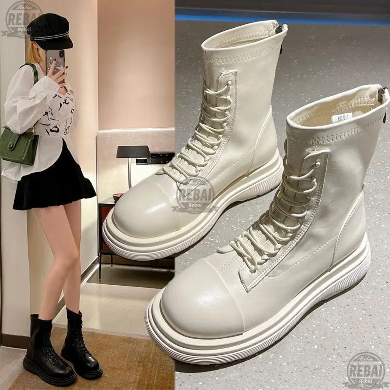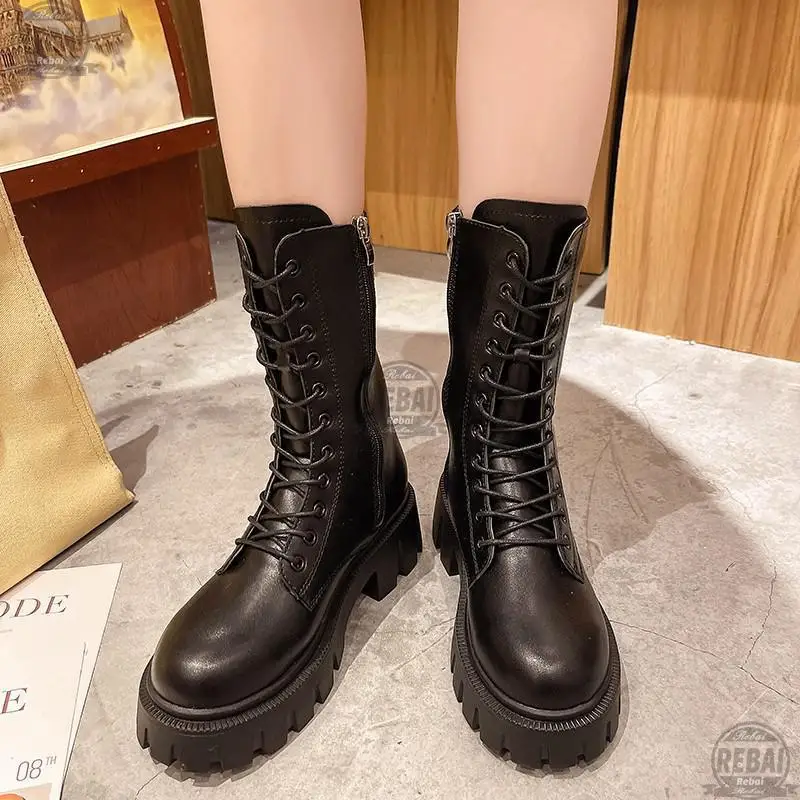 Женские Винтажные ботинки до середины икры, черные повседневные ботинки до колена на толстом каблуке, со шнуровкой, на платформе, 2021