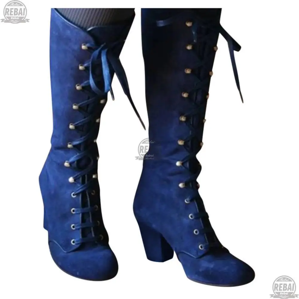 2020 г. Средневековые Женские повседневные сапоги для верховой езды...