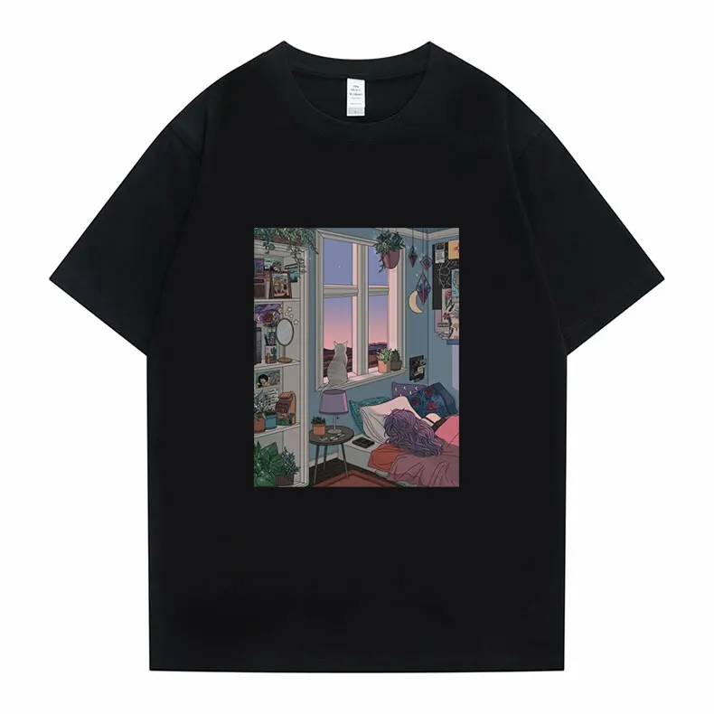 Модная мужская и женская футболка с изображением ночного города и иллюстраций, летние повседневные свободные футболки, рубашка, Новые Топы в простом стиле унисекс с коротким рукавом