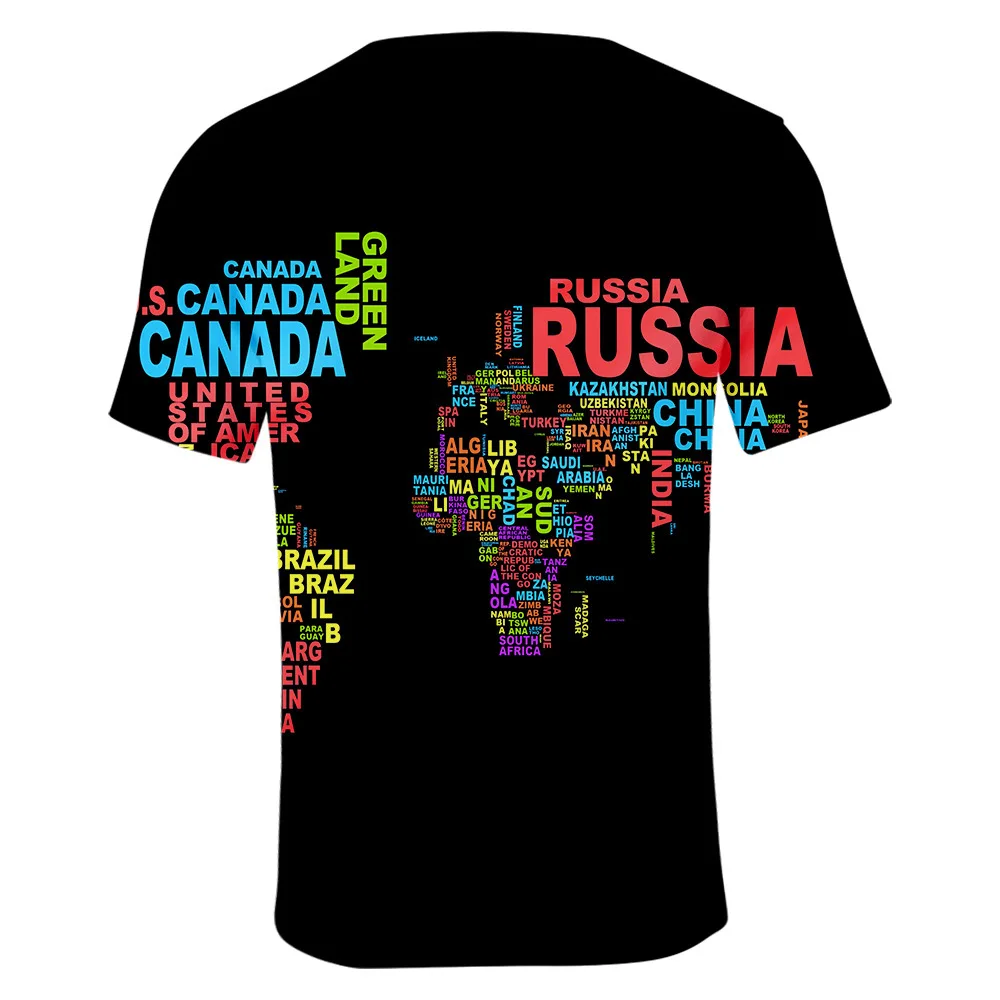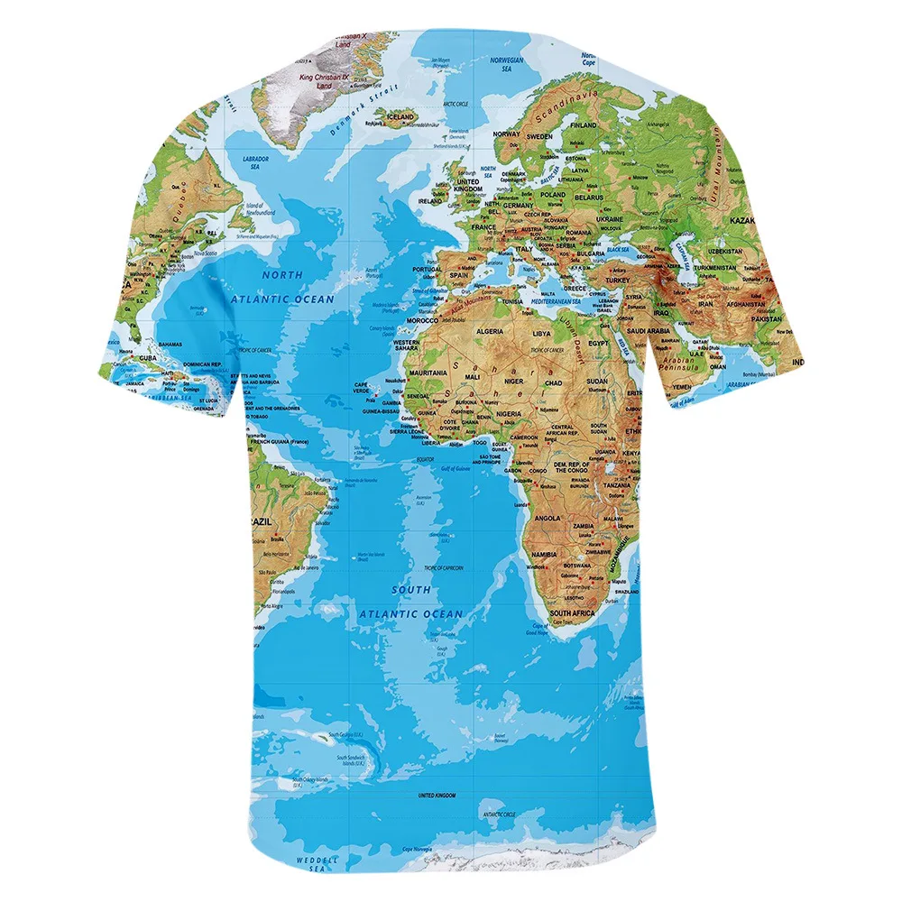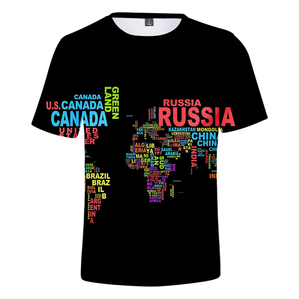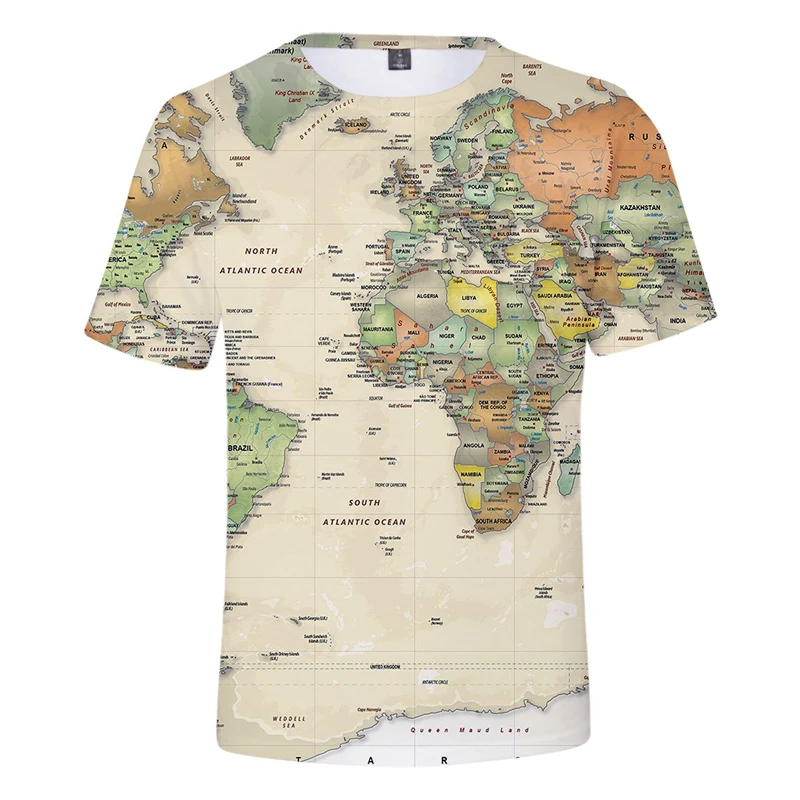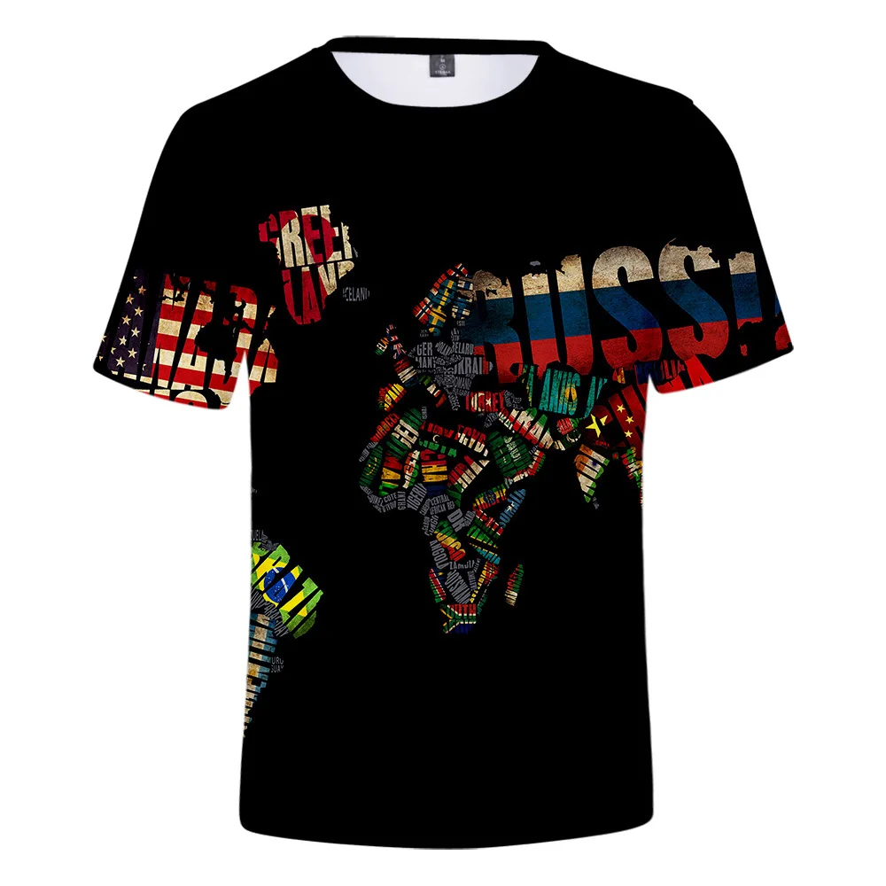 Футболка мужская с 3D-принтом карты мира, топ с графическим принтом в стиле хип-хоп, модная тенниска в стиле Харадзюку, лето