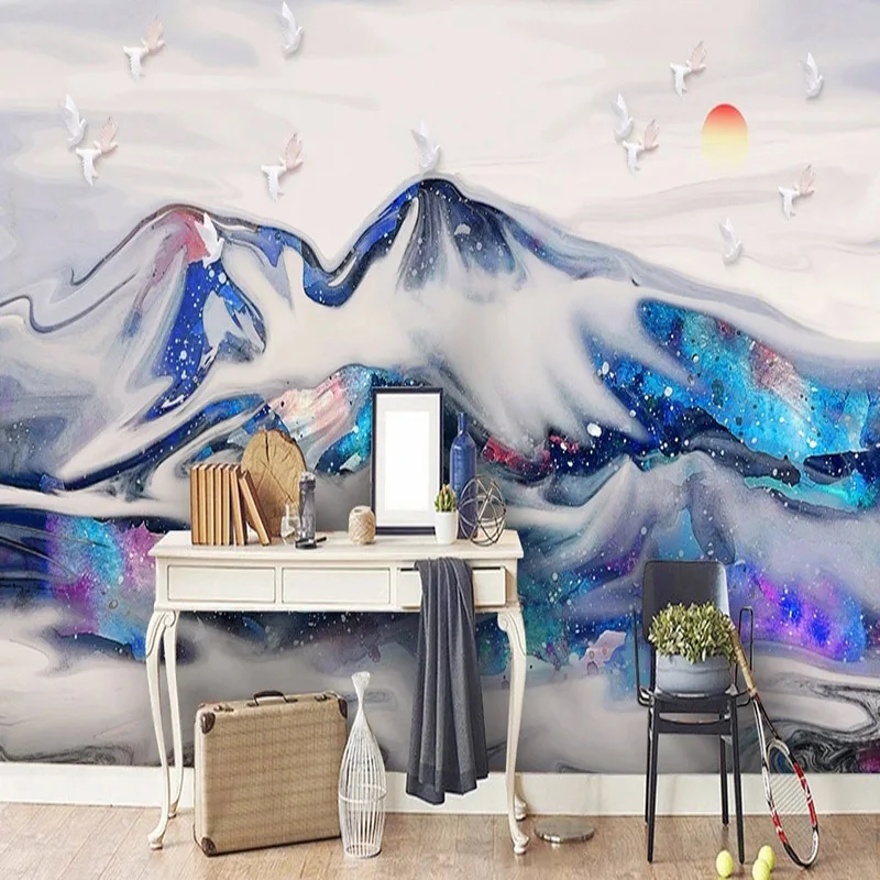 Обои на заказ, современные абстрактные 3D снежные горы, пейзаж, настенная живопись, гостиная, ТВ, диван, спальня, домашний декор, обои