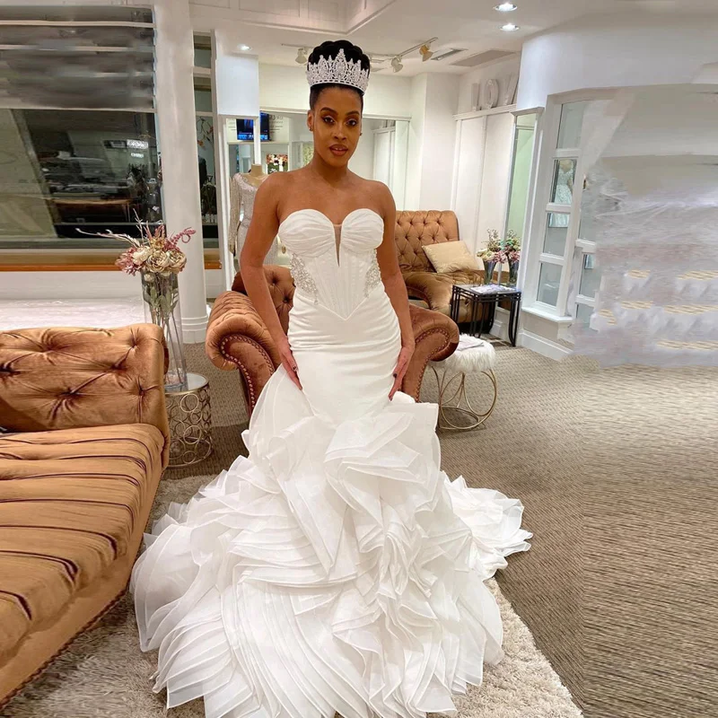 Aso Ebi Свадебные платья с оборками Русалка 2022 блестящие с длинны...