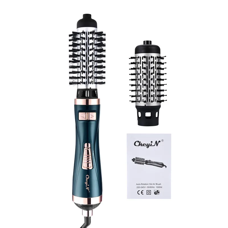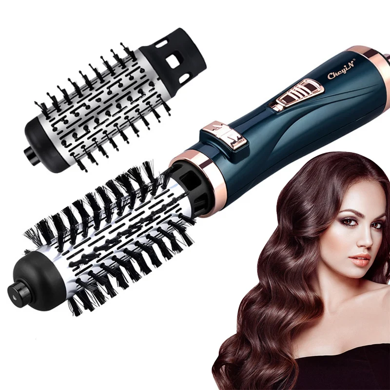 Эргономичный обтекаемый дизайн корпуса, легко держать и управлять.2 скорости и 3 режима нагрева.Две сменные щетки и номинальная мощность 1000 Вт позволяют быстро высушить волосы и легко укладывать волосы одновременно.С функцией вращения, может вращаться на 360 ° по часовой стрелке и против часовой стрелки свободно, позволяет высушить волосы легко.Многофункциональная фен-щетка, подходит для сушки, завивки различных стилей волос.1,7 м 360 градусов поворотный шнур питания, вы можете вращать его под любым углом, не беспокоясь о намотке.