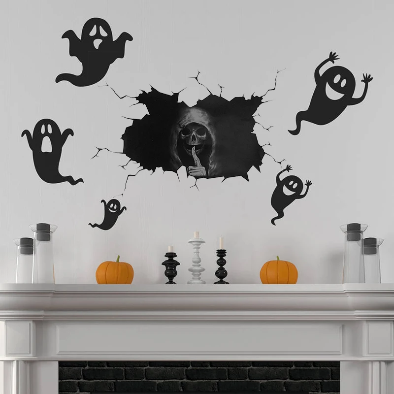 1 шт. 20*30 см/30*40 см Хэллоуин Череп стикер дом с привидениями украшения на окна для дома Наклейка декоративная Автомобильная Наклейка Декор ужас настенный стикер sUSD 2,8/Шт/Лот 1