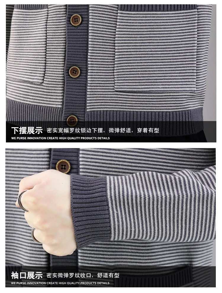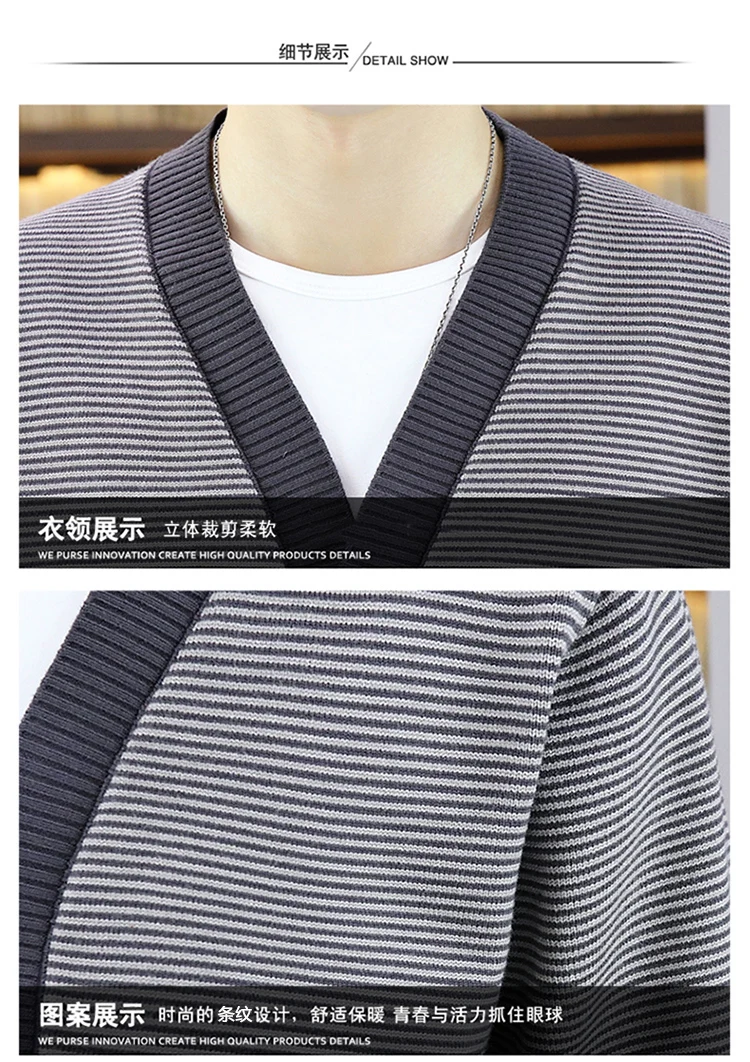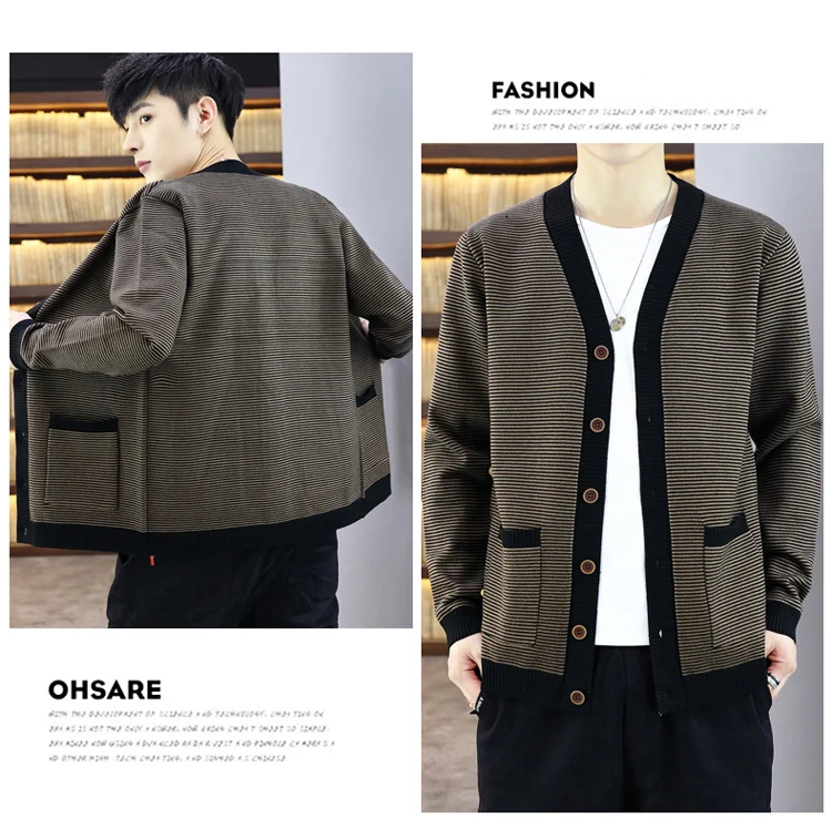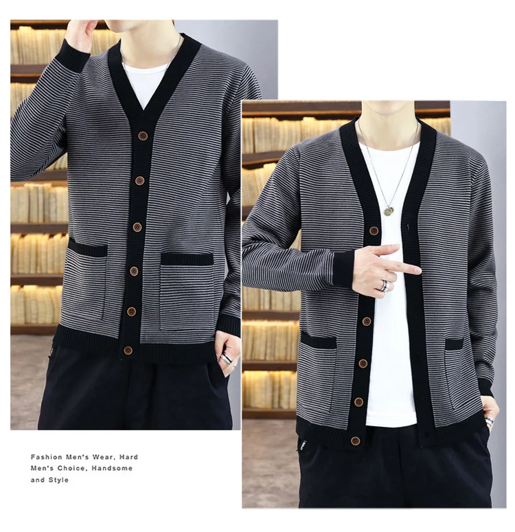 Мужской однобортный Кардиган в полоску, повседневный облегающий стрейчевый трикотажный свитер в английском стиле с V-образным вырезом, осень 2021