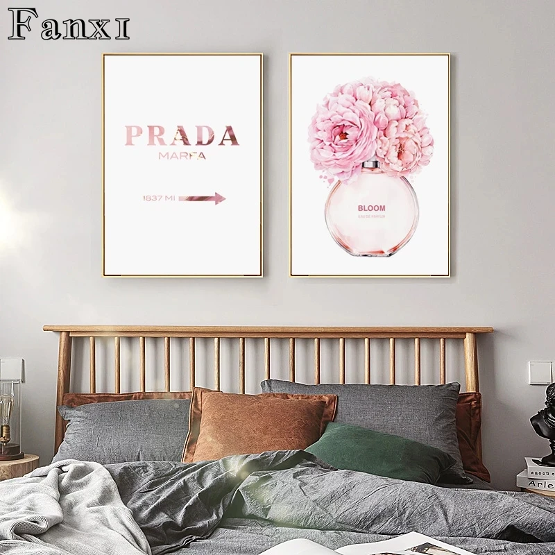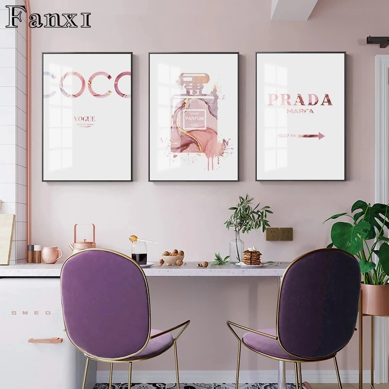 Модный постер с цитатами Коко, розовый цветок, духи, женщина, настенное искусство, живопись на холсте, современные абстрактные модные картины для декора комнаты девушки