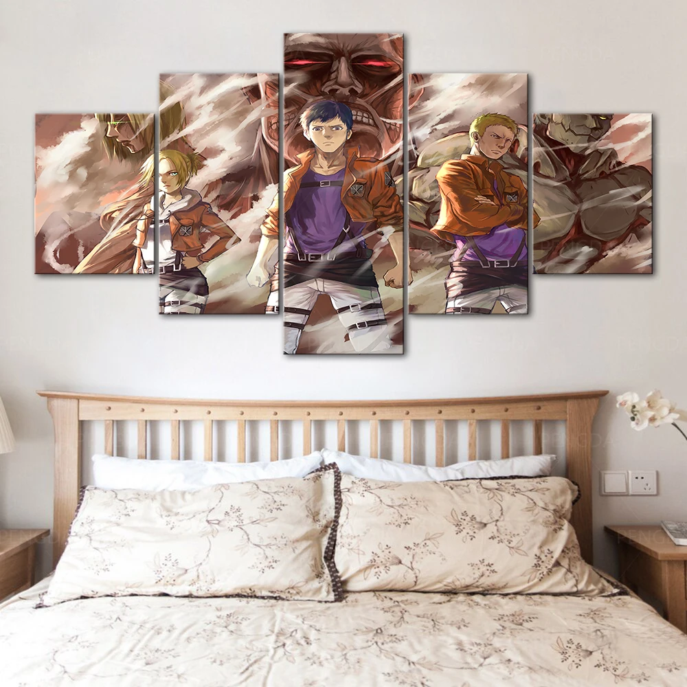 Домашний декор, Картина на холсте атака на Титанов, HD-принты, аним...