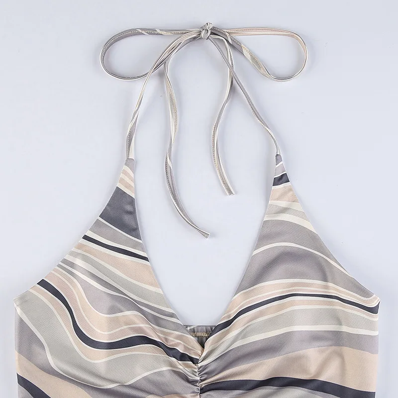 Сексуальное облегающее платье Y2K с лямкой на шее и открытой спиной...