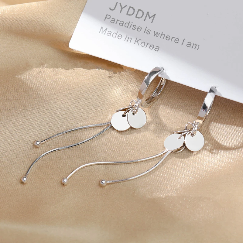 Женские круглые серьги с двойной длинной кисточкой, серебристого цвета