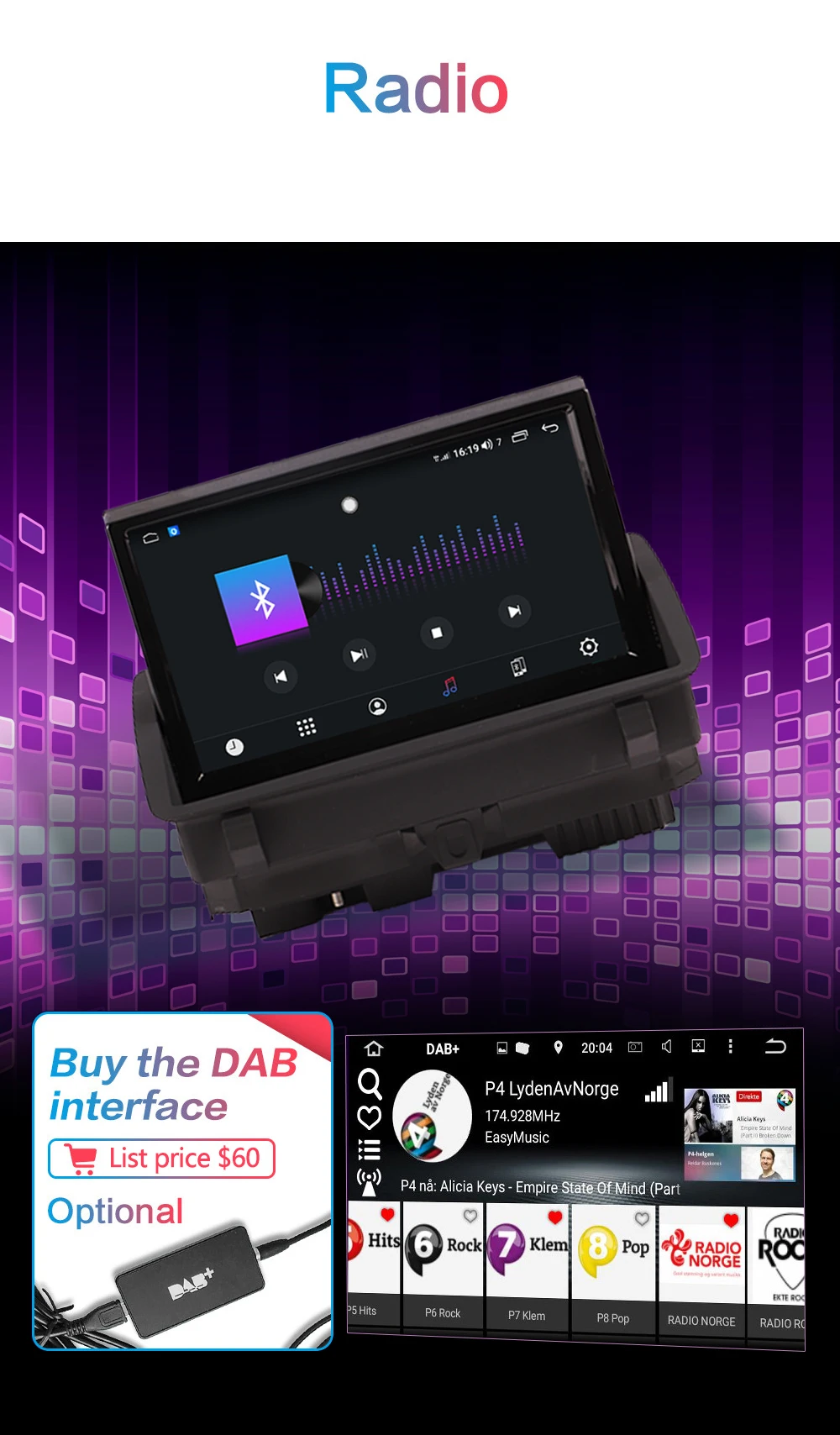 3. Поддержка внешнего приемника DAB (управляется Toush screen)