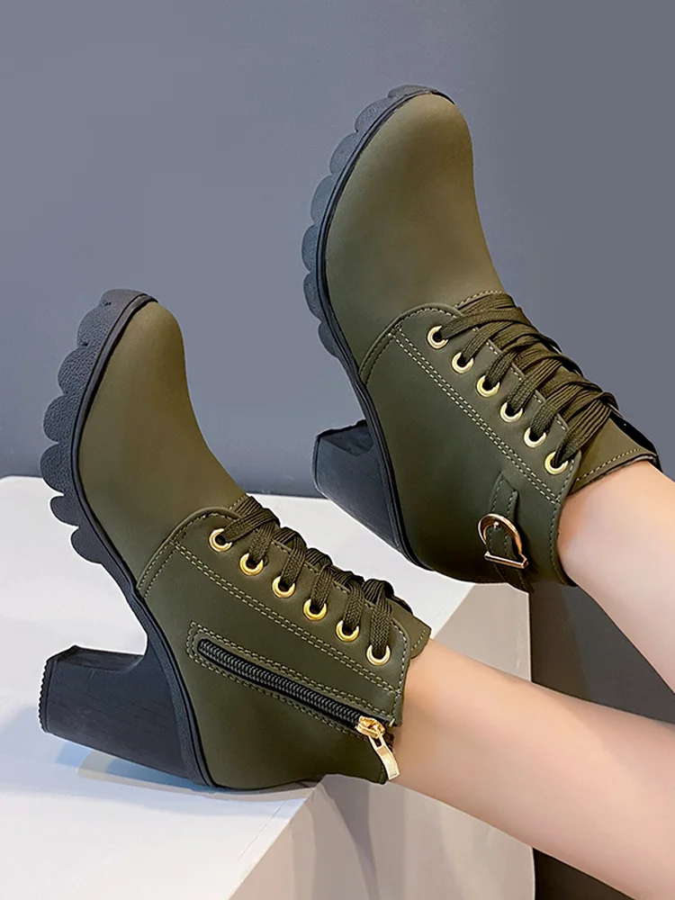 Женские ботинки из ПУ кожи, на шнуровке, на высоком каблуке