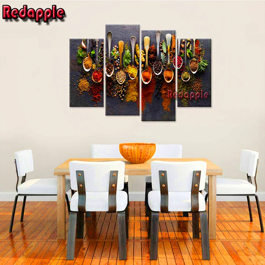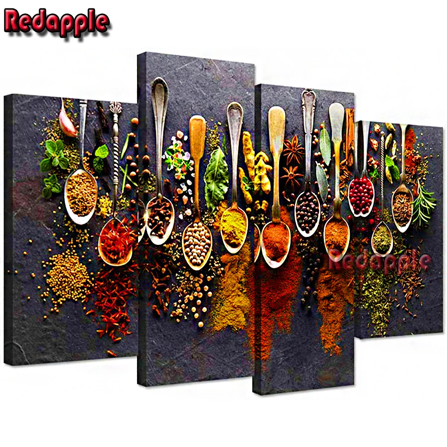 Украшение кухонной стены 4 шт ВЕСЕЛЫЕ ложки для пряностей винтажная Алмазная картина, полная, квадратная, круглая Алмазная вышивка, мозаика diy пазл