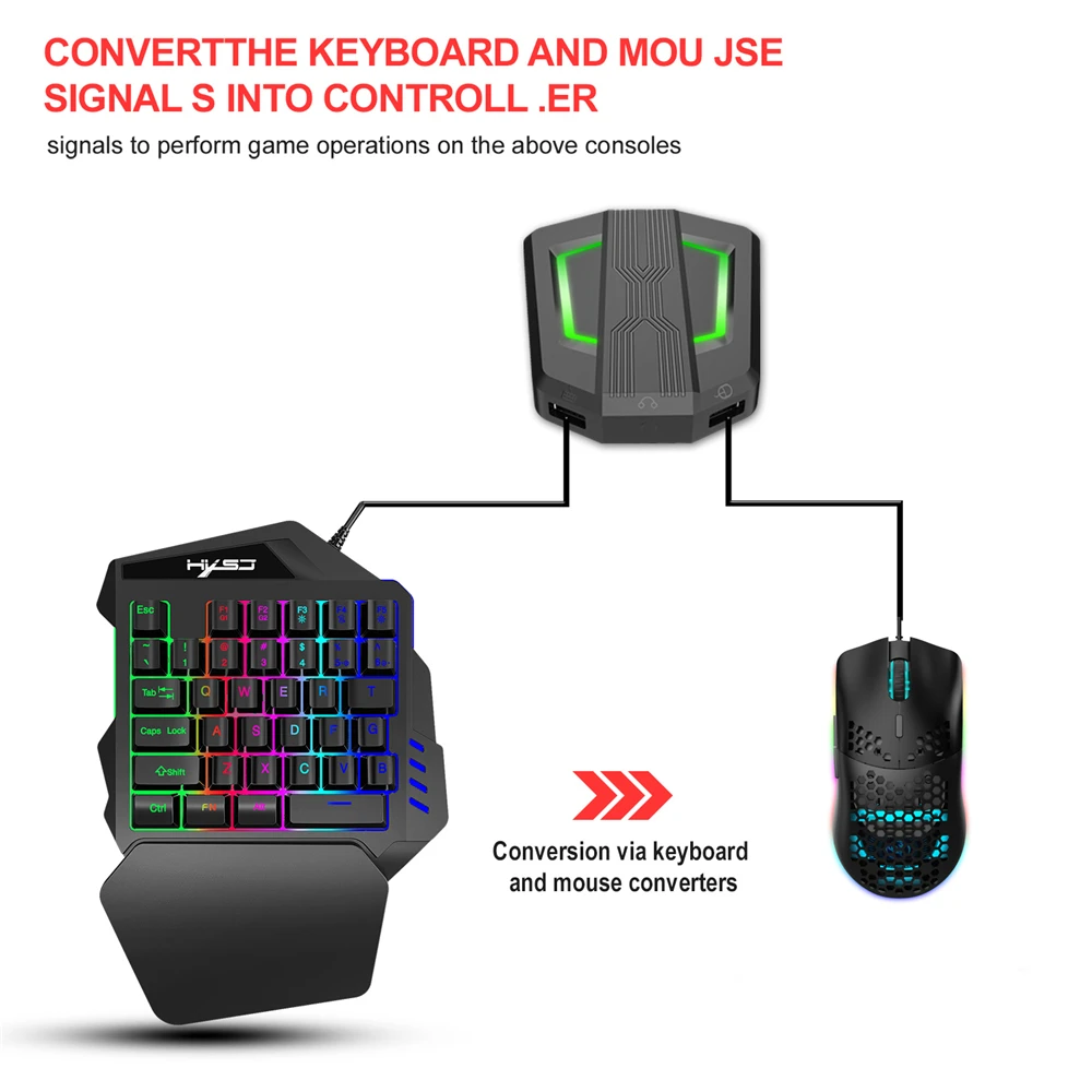 HXSJ P6 игровая мини USB клавиатура мышь для одной руки набор с конвертером адаптера для PS4PS3Xbox OneXbox 360N-переключатель клавиатуры мыши