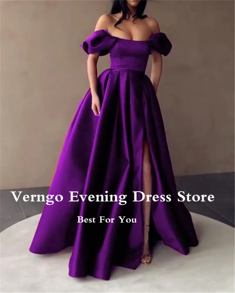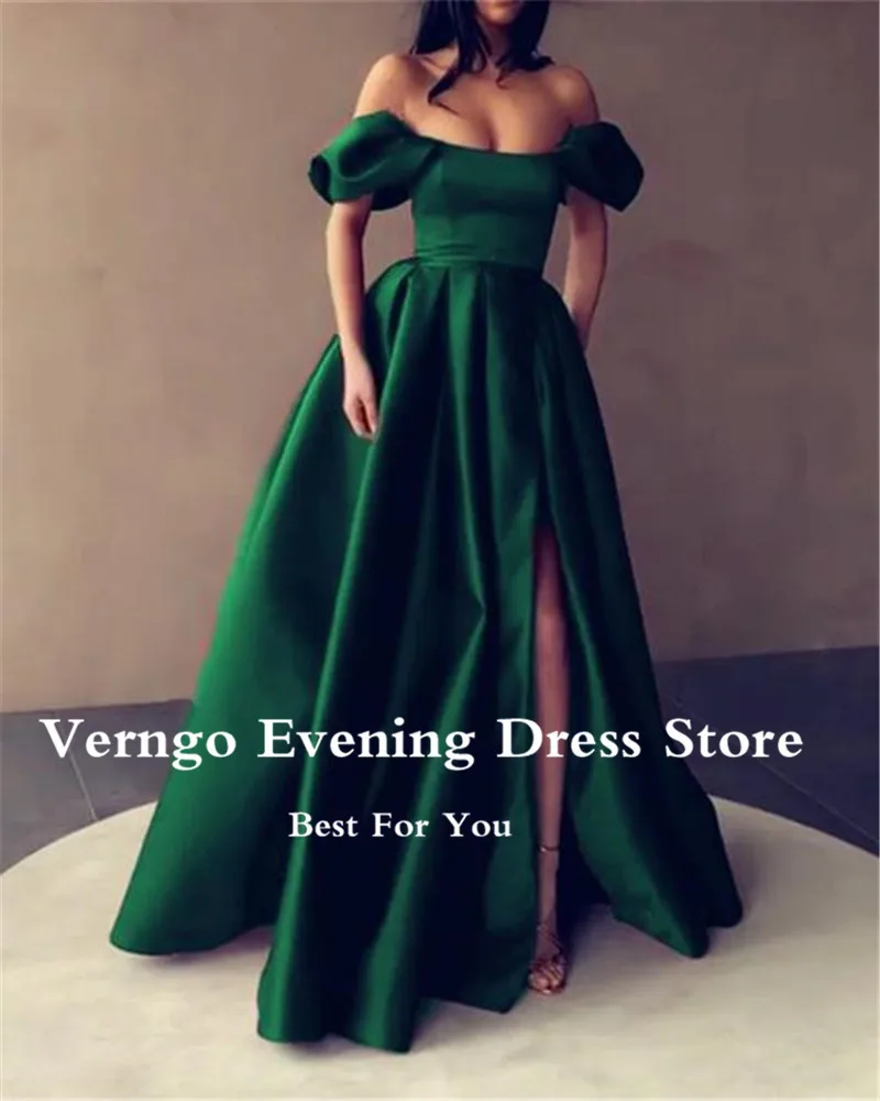 Платье вечернее атласное ТРАПЕЦИЕВИДНОЕ с открытыми плечами, с разрезом