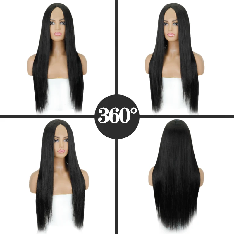 Linghang длинный прямой синтетический черный парик смешанный коричневый и блонд длинный парик для чернокожих женщин средней части натуральный парик Лолита косплей