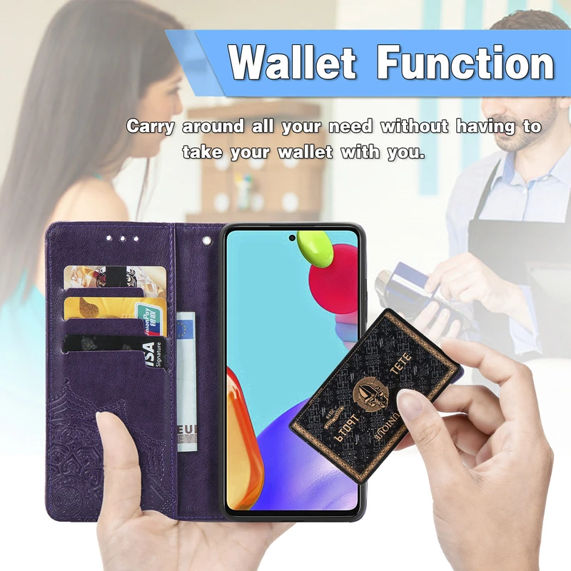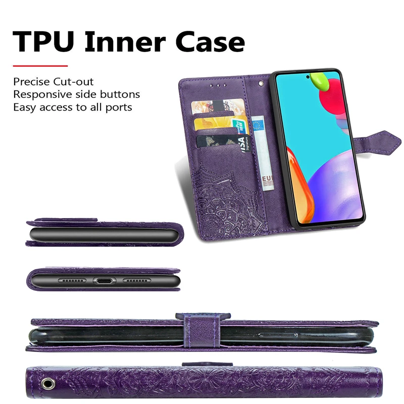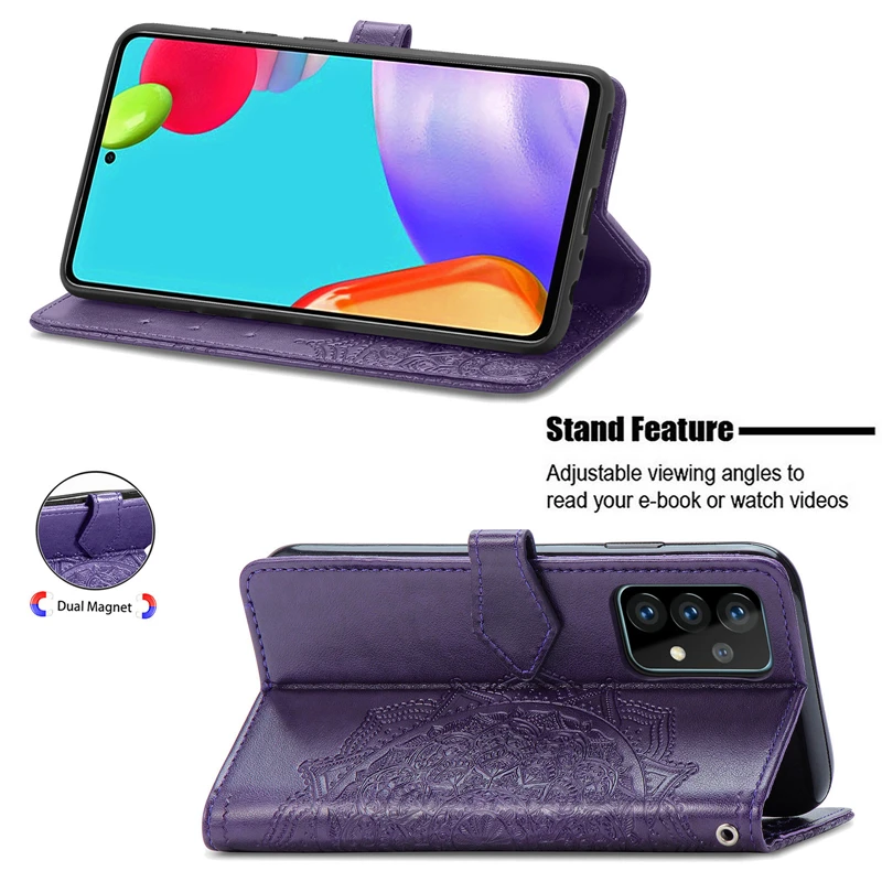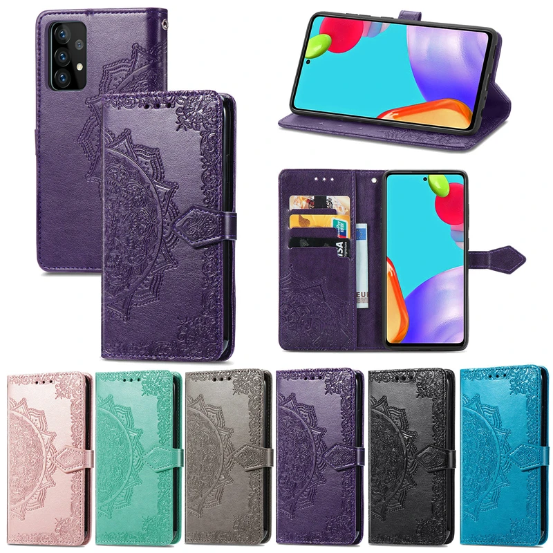 Кожаный чехол-бумажник с кружевом, флип-чехол с цветочной мандалой для Samsung Galaxy A12, A22, A32, A42, A52, A72, A01, A11, A21S, A31, A41, A51, A71, A30, A50, A10