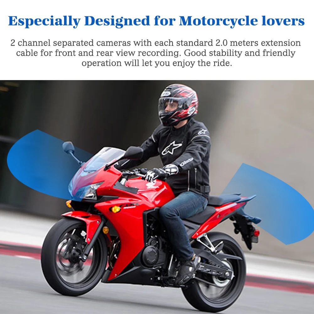 Видеорегистратор KDsafe мотоциклетный с двумя камерами, водонепроницаемый спортивный видеорегистратор с двойной камерой на передней и задней панели, для вождения