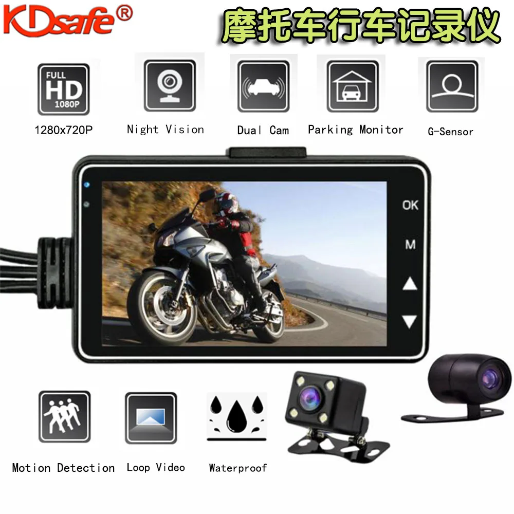 KDsafe HD мотоциклетная двойная камера DVR мотор видеорегистратор Водонепроницаемый спортивный видеорегистратор двойной трек передний задний мото видеорегистратор циклическое видео