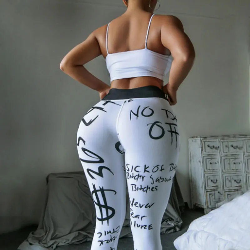 Высота талии Для Женщин Пуш-Ап Йога Брюки с буквенным принтом и над...