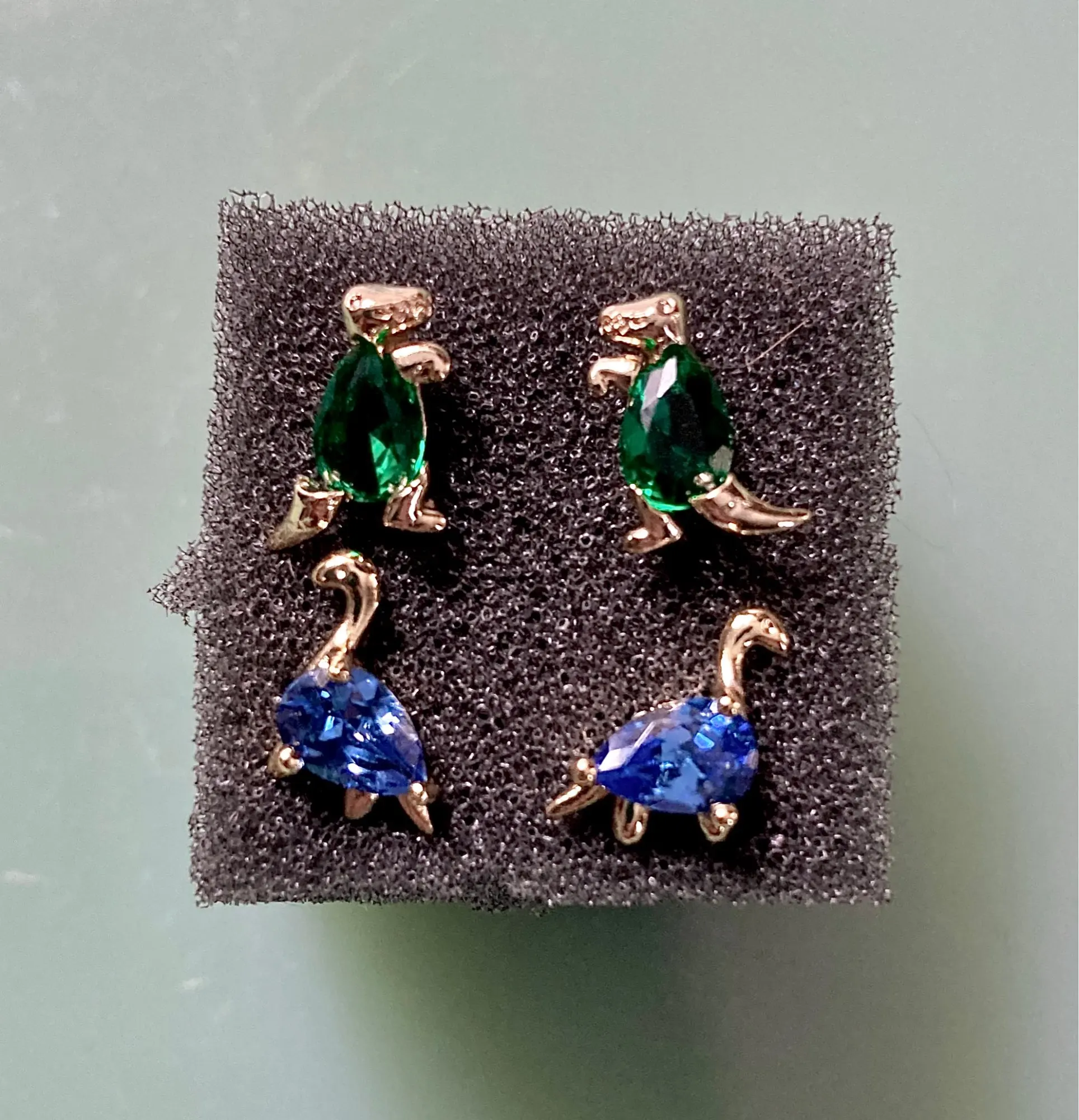 Трендовые серьги в стиле Ins, серьги-гвоздики с динозавром, циркони...