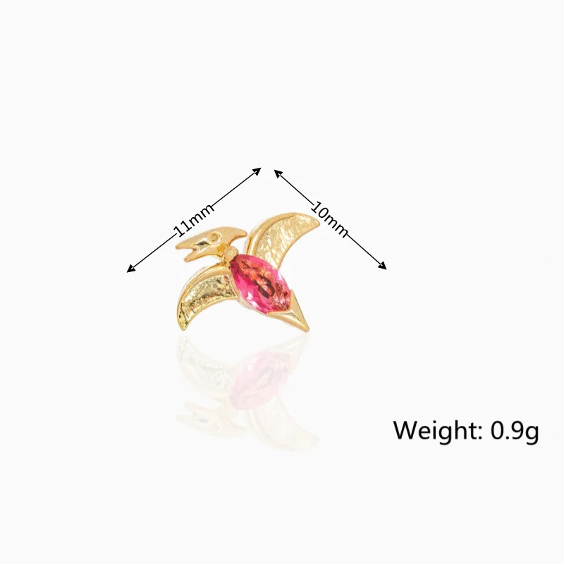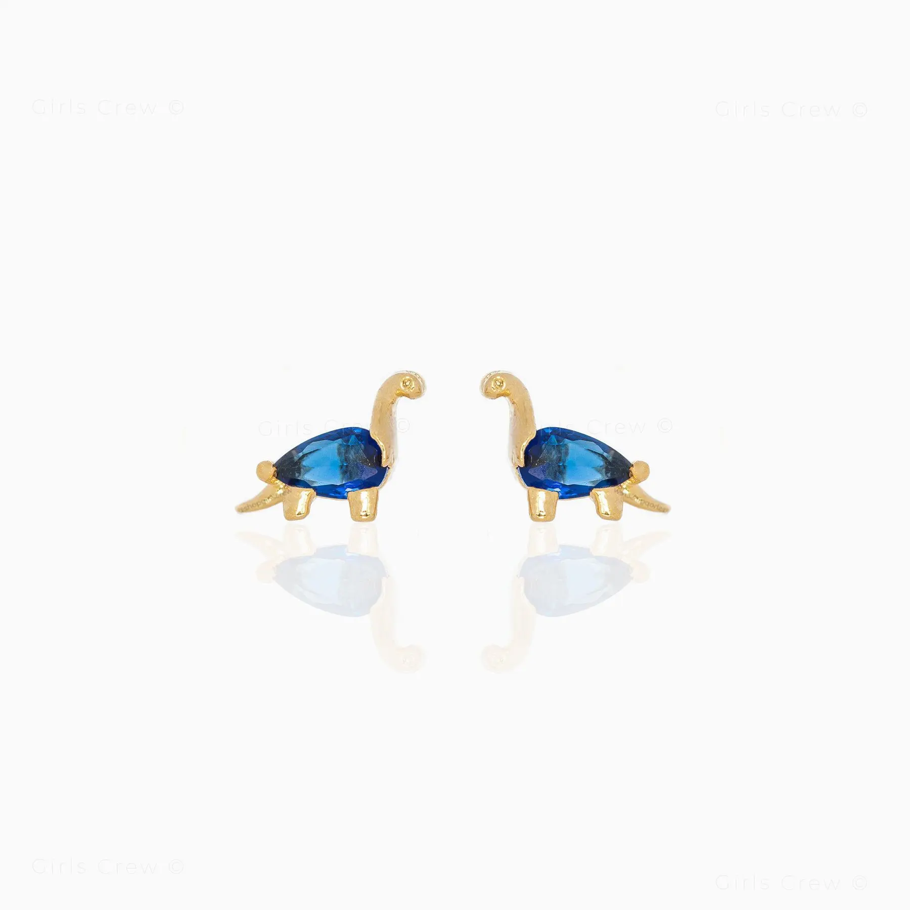 Женские серьги-гвоздики с фианитами, золотистые серьги с изображением динозавра, 2021