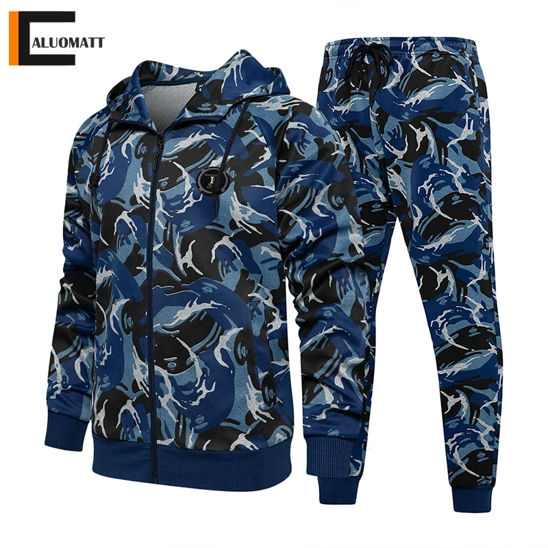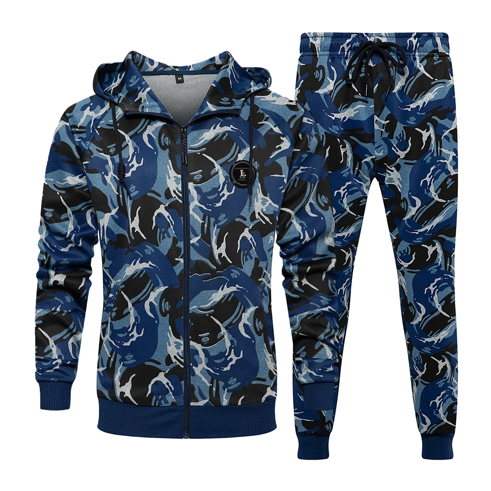 Мужской спортивный костюм в стиле пэчворк, повседневная куртка на молнии для бега и фитнеса, комплект из 2 предметов, камуфляжный костюм в стиле хип-хоп, осень 2022