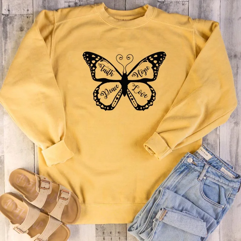 Бабочка христианская вера надеюсь мир любовь Пасхальный подарок для девочки 1 Коринтианс 13 13 13 свитшот из чистого хлопка хипстерские религиозные пуловеры