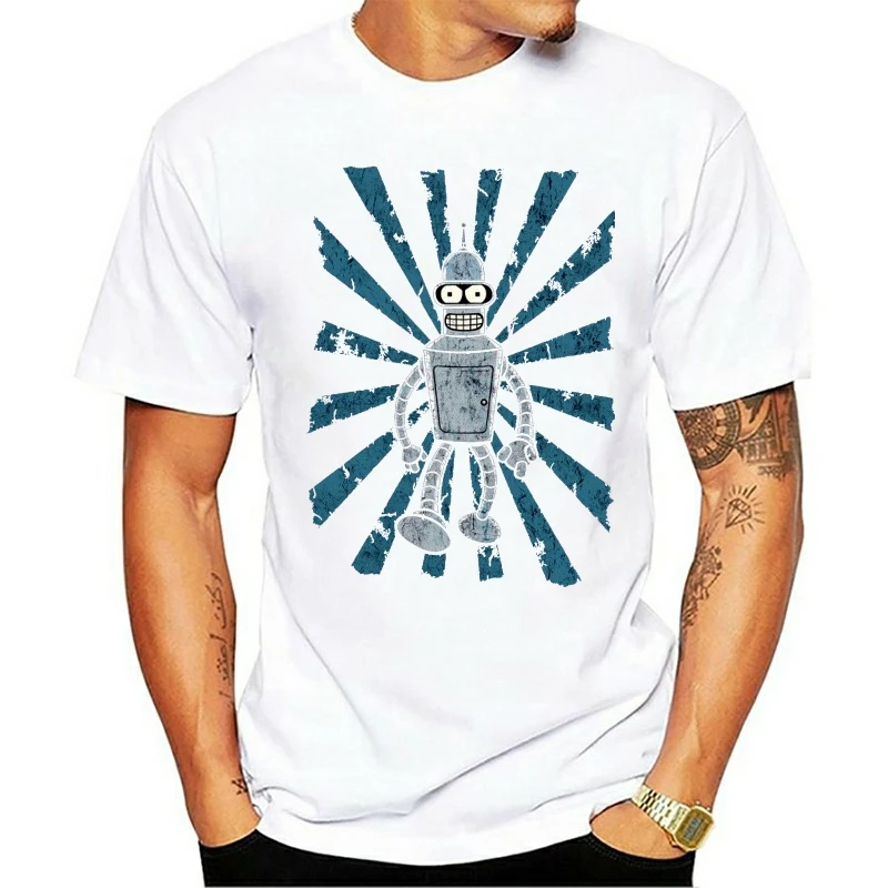 Новая Винтажная повседневная мужская футболка с круглым вырезом и принтом в виде робота