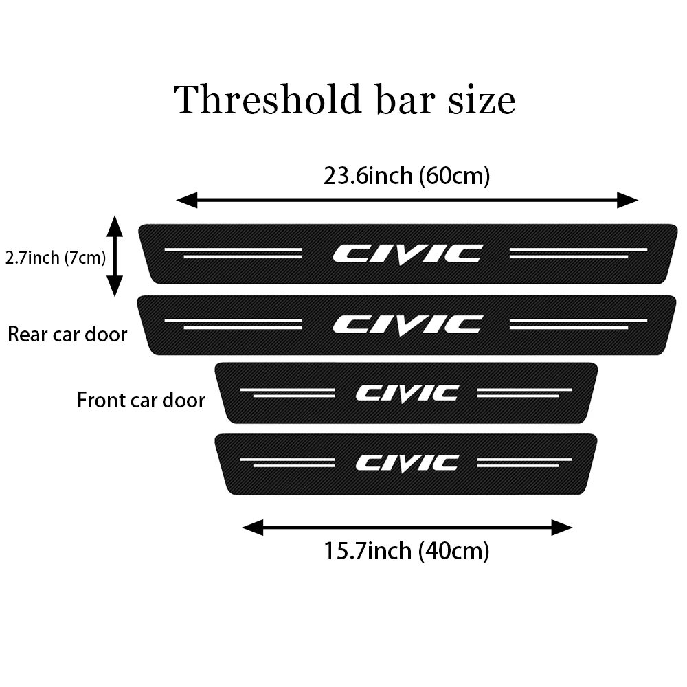 Наклейка на порог автомобиля из углеродного волокна для Honda Civic 7, 8, 9, 10, 2020, 2019, 2018, 2017-2001, 4 шт.