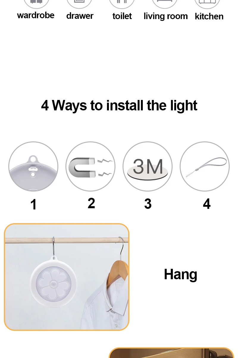 Супер-яркий светодиодный светильник-выход до 20 люмен, 6 шт. супер яркий SMD 2835 Светодиодный; Достаточно яркий, чтобы убедиться, что вы никогда не спотыкаетесь в темнотеДатчик движения и светильник PIR-Автоматическое включение в пределах 10 футов, автоматическое выключение через 20 секунд без обнаружения движения помогает продлить срок службы батареи. Включается только в темное время суток и при обнаружении движенияПростая установка-Простая установка, без жесткой проводки. С клейкими накладками и встроенным магнитом, вы можете приклеиться куда угодноПитание от аккумулятора от 3 батареек AAA (не входят в комплект) для бескорпусной установки. Чтобы обеспечить вам освещение в областях, которые имеют ограниченный или нет доступа к электричествуПримечание: Этот светильник можно включить только в темноте. Он не включится если светильник датчик было обнаружено при достаточно светильник. И пожалуйста, не устанавливайте этот светильник в месте высокой температуры, в противном случае высокие температуры повлияют на клейкую ленту, и светильник легко сползет!