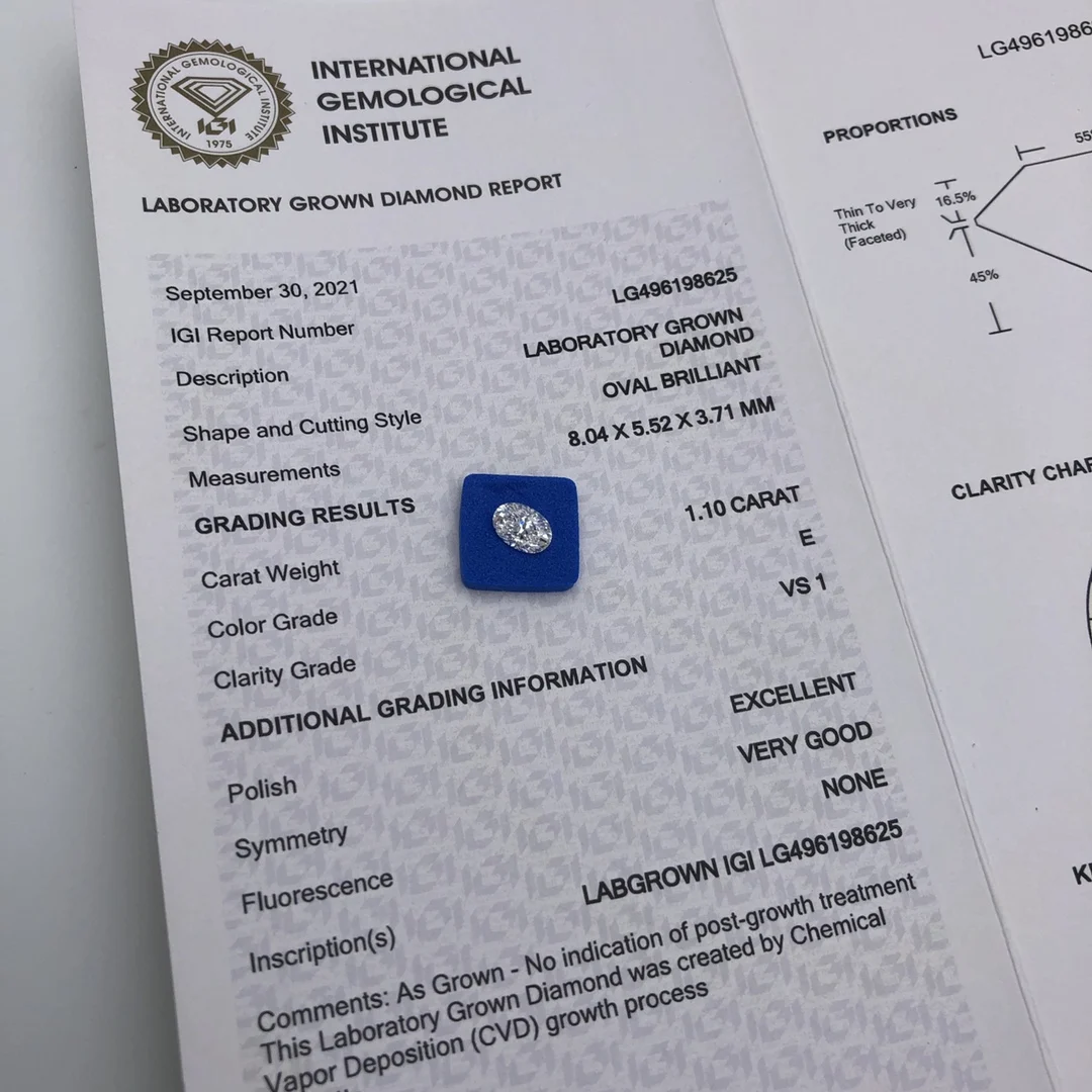 Алмазная овальная форма для лабораторного выращивания HPHT CVD 1ct 1.5ct 2ct