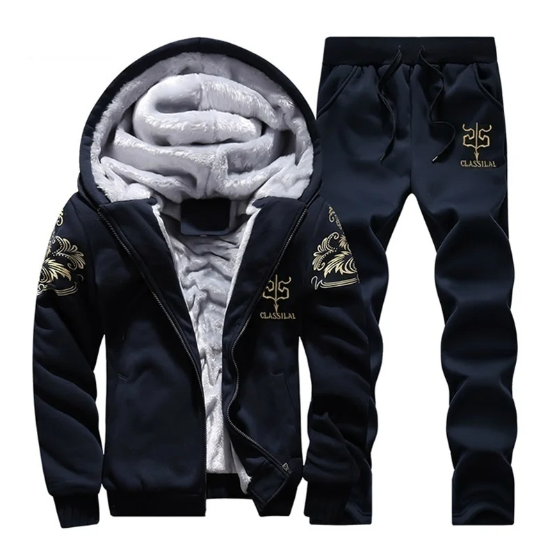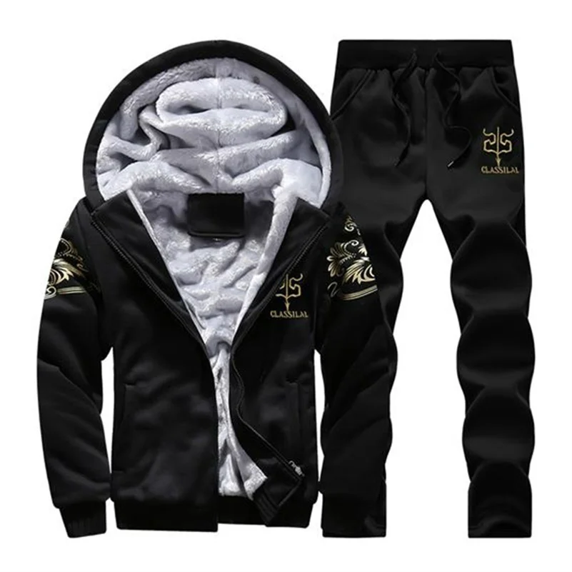 Мужской зимний теплый спортивный костюм с флисовой подкладкой, бархатная толстовка с капюшоном, повседневный мужской комплект из 2 предметов, толстовка с капюшоном и штаны, спортивная одежда, новинка 2021