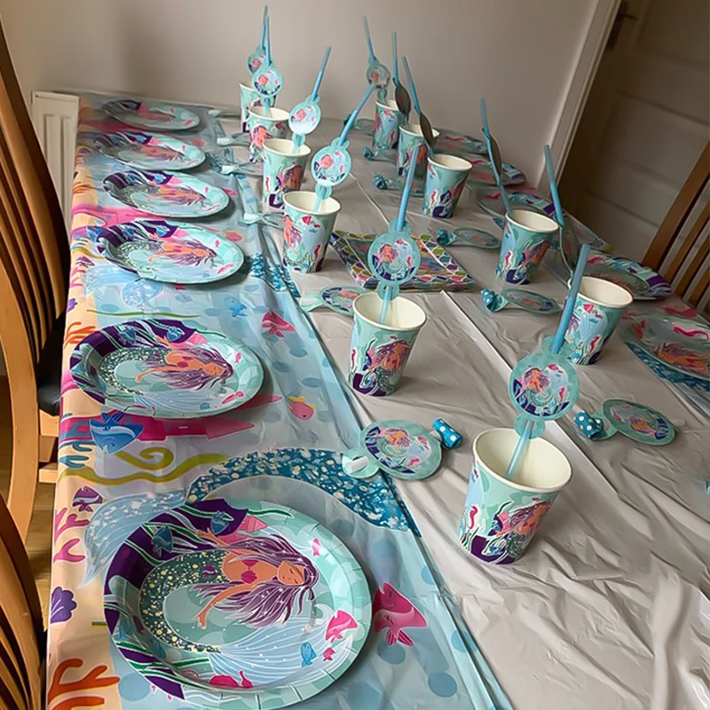 Детская одноразовая посуда с хвостом Русалочки, украшение для перво...