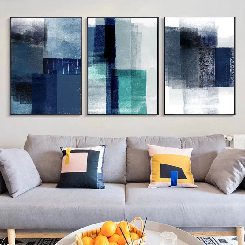 Абстрактная живопись минималистский декор синий градиентное граффити плакат настенное искусство холст картины для дома Квадратные Украшения настенное искусство