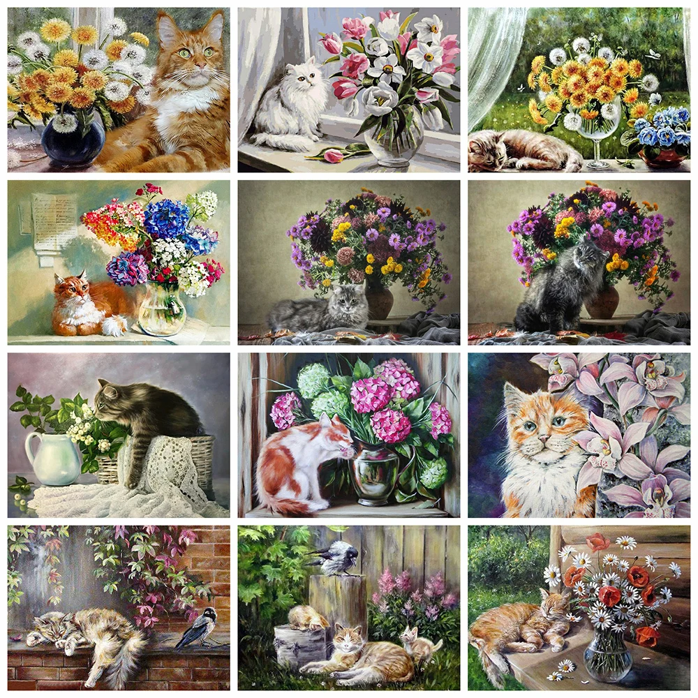 Картина на холсте, 5d, алмазная картина, кошка, сделай сам, мозаика, цветок, полностью квадратная дрель, алмазная вышивка, животное, домашний декор, набор для рукоделия