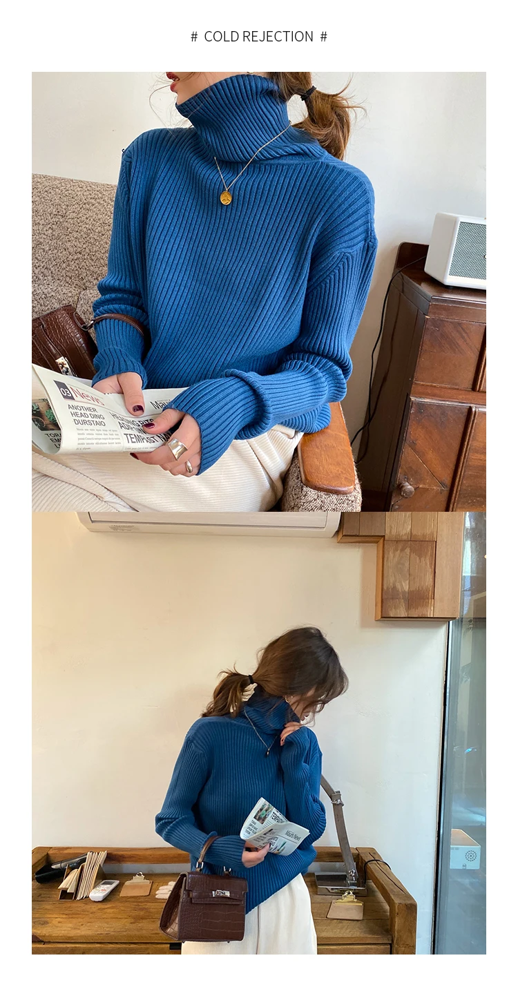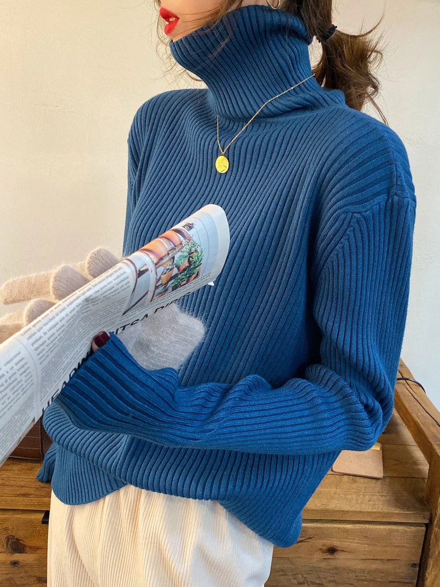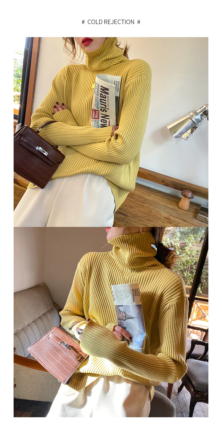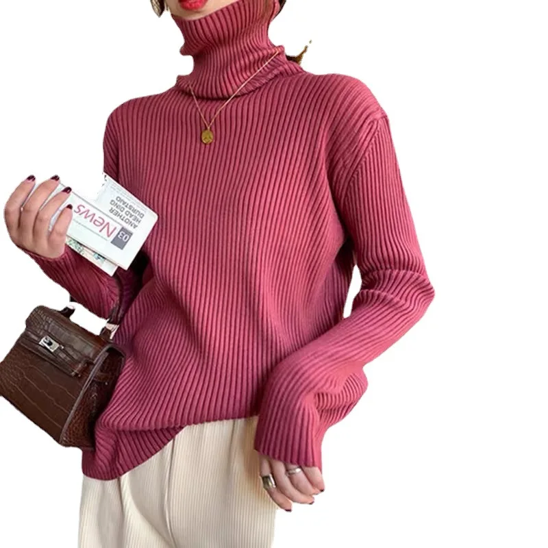 2022 женский негабаритный базовый пуловер свитер водолазка с длинным рукавом Осень Зима Свободный джемпер вязаный тонкий свитер для женщин
