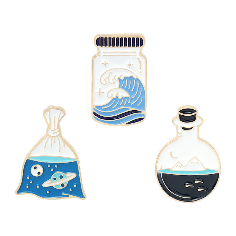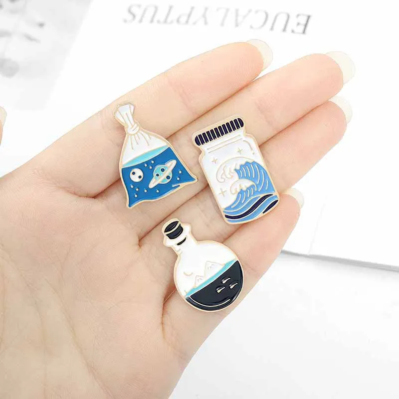Мультяшный креативный минималистичный дизайн брошь в виде стеклянной бутылки индивидуальный значок с рисунком океана волны планеты распылителя для подарка друзьям