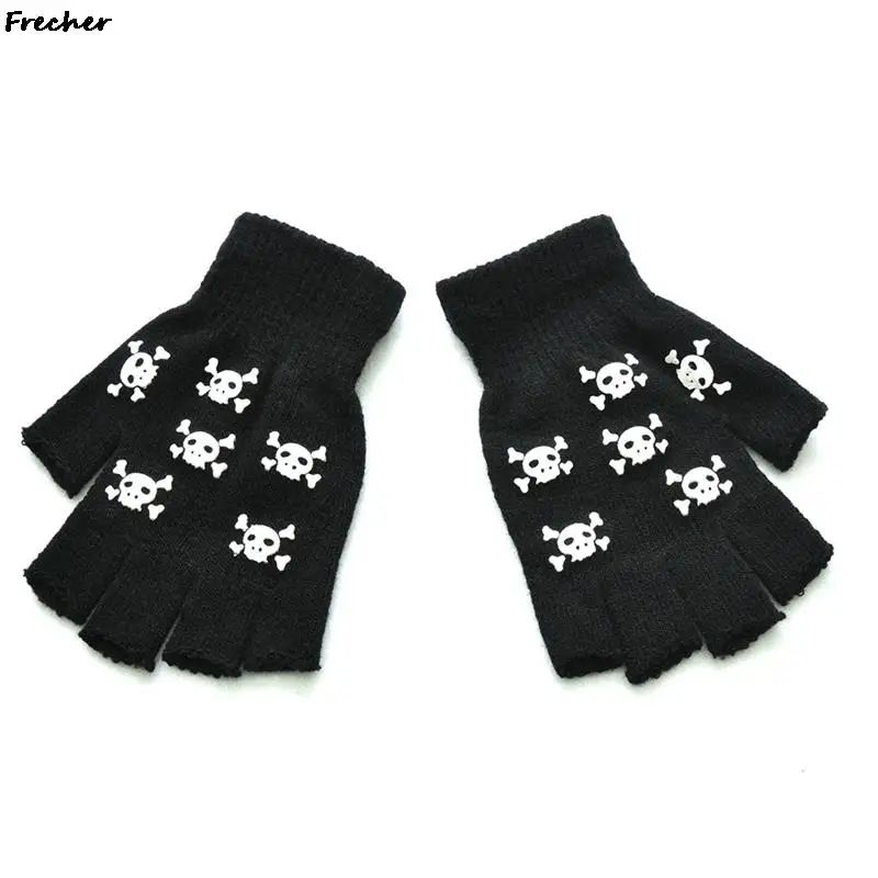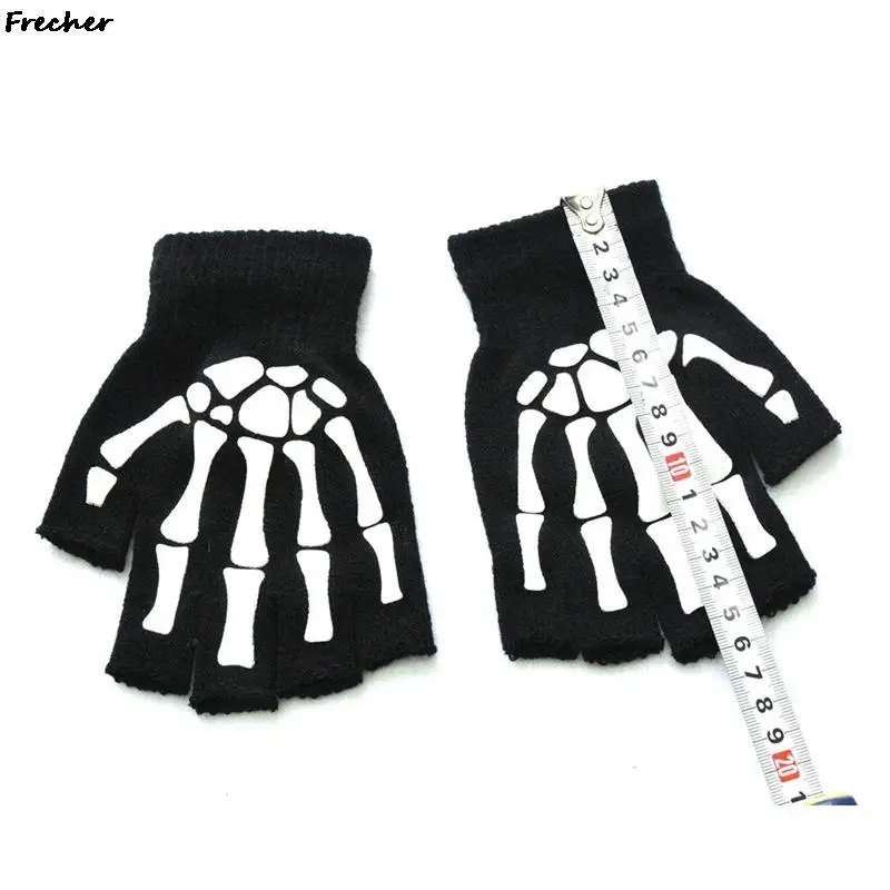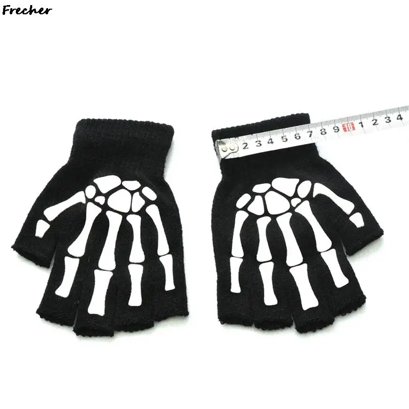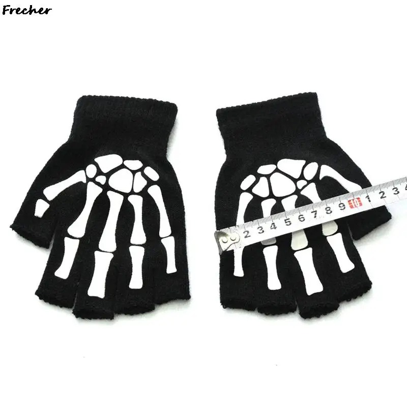 Унисекс, череп скелета на Хэллоуин перчатки на полпальца для взросл...