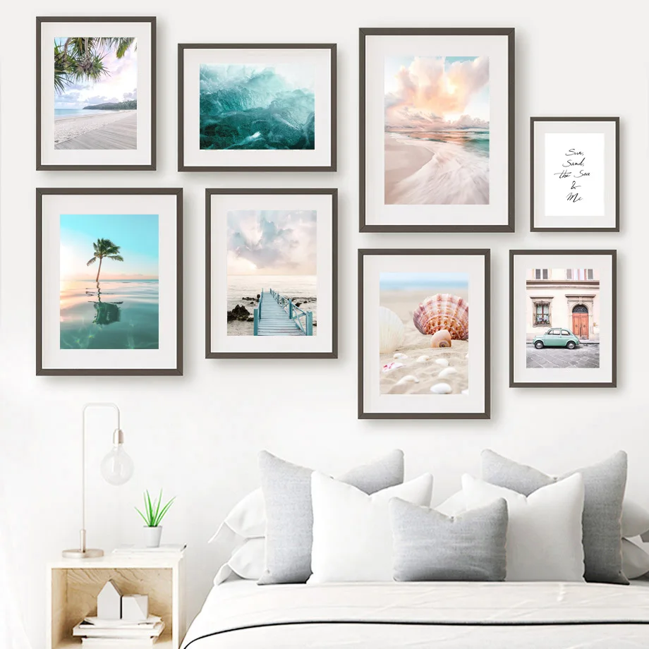 Морская пляжная ракушка Пальма лодка автомобиль Каньон настенная Картина на холсте скандинавские плакаты и принты для стены для гостиной декоративные картины