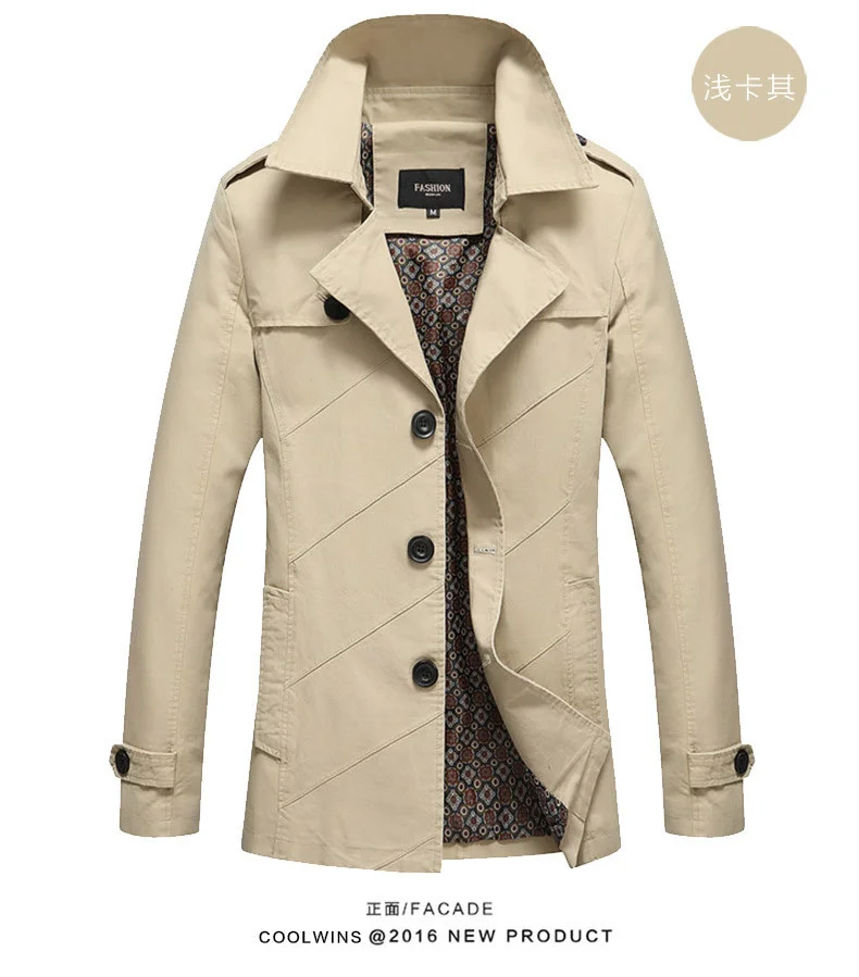 Мужская куртка, Тренч, Повседневная облегающая куртка, на осень