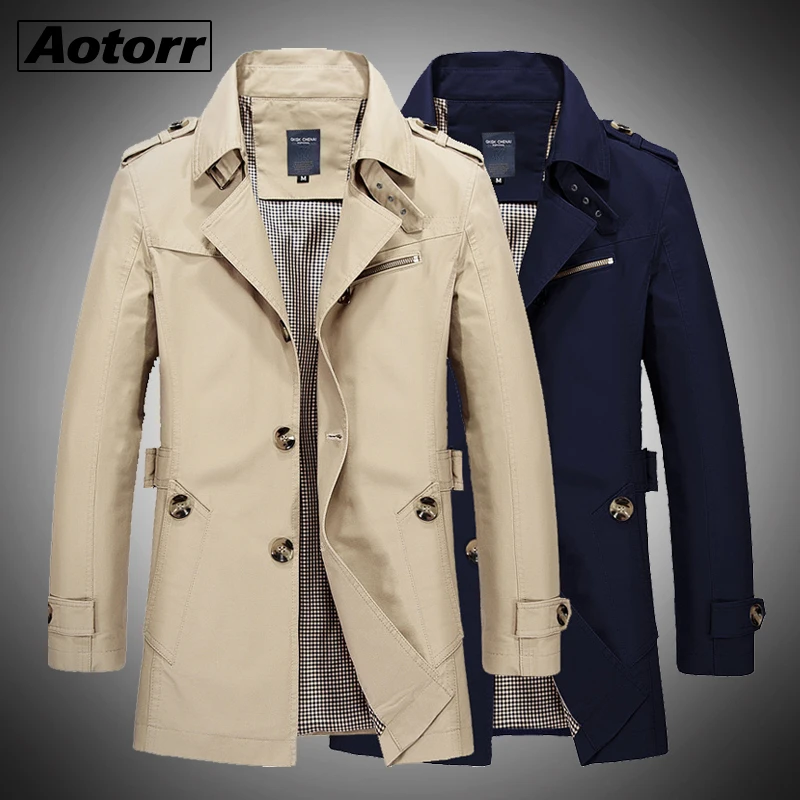 Тренчкот мужской длинный из хлопка, ветровка, Повседневная модная в...