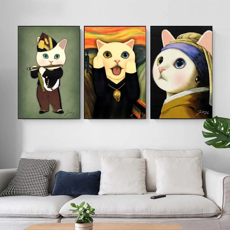 Плакаты-портреты в виде кота картина с рисунком животных, винтажный...