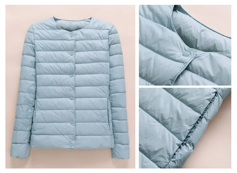 2021 Новое зимнее женское пуховое пальто, Сверхлегкий пуховик без воротника, портативная Женская стеганая парка с круглым вырезом, пуховое пальто