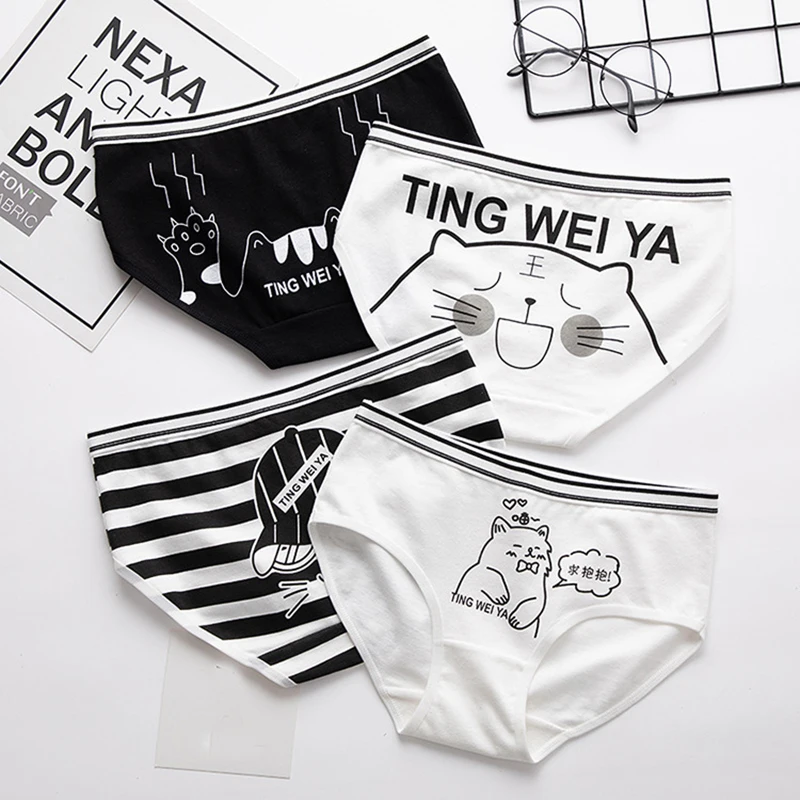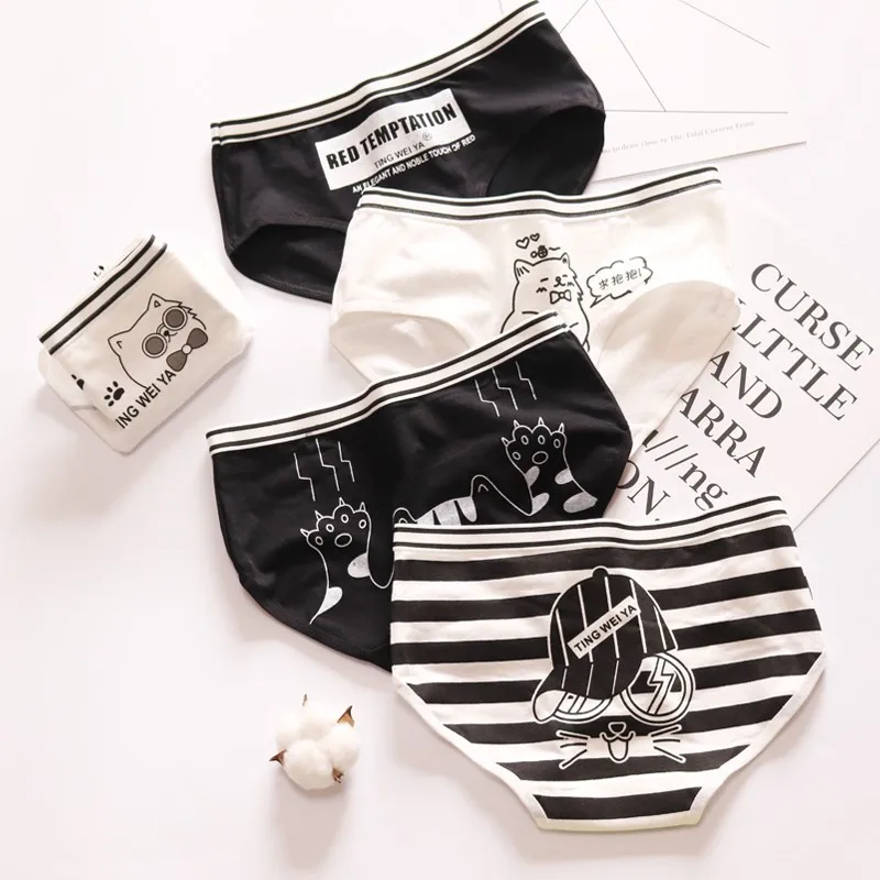 Простое милое черно-белое мультяшное хлопковое женское нижнее белье...
