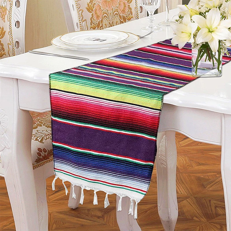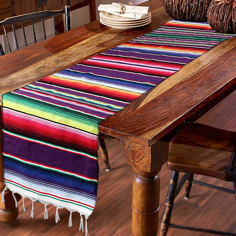 Хлопок Мексиканское одеяло настольная дорожка 14x84 дюйма Мексиканская скатерть сделана из хлопка и кисточки, что делает ее уникальной ручной работы День мертвых, мексиканская фиеста вечерние мексиканвечерние НКА, свадьба, племенвечерние, украшение на день рождения, Рождество, Хэллоуин, День благодарения и т. д. Мексиканский бегущий столик сделает ваши особые моменты еще более запоминающимися, идеально подходит для стола, ковриков для пикника, одеяла, украшения стен, уличного стола и всего, что вам нужно покрыть Примечание: хлопковая скатерть пришита со всех четырех сторон, не развязывается нить, ручная стирка, легкое утюжок паром по мере необходимости Примечание: Обратите внимание, что каждое изделие выполнено вручную, цвет и рисунок могут отличаться Ручная стирка и сушка в подвешенном состоянии Комплектация: 1 шт. Материал: хлопок Размер: 14x84 дюйма/35x213 см Вес: 200 г