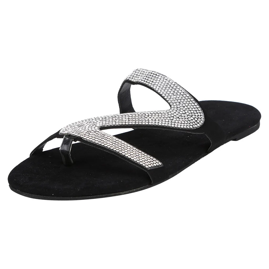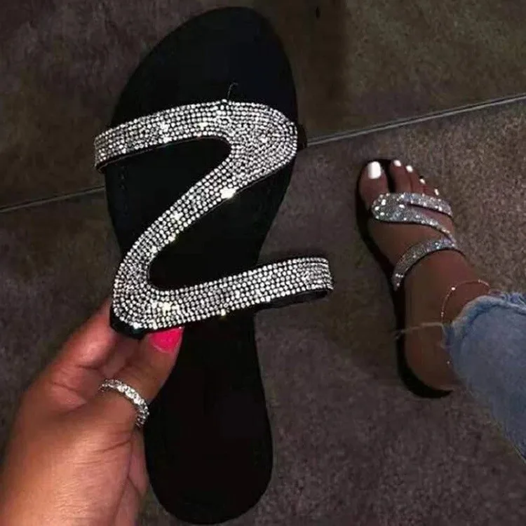 Туфли женские однотонные в римском стиле, повседневные шлепанцы на плоской подошве, с кристаллами, уличные сандалии, Ретро стиль, большие размеры, лето 2021