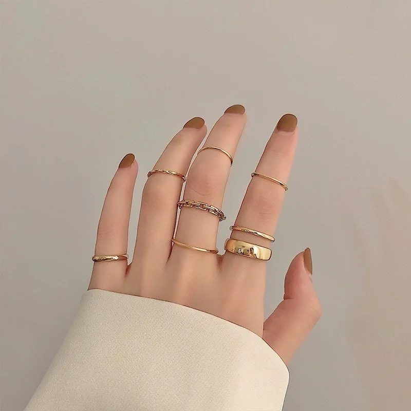 Набор женских геометрических колец, золотистыесеребристые, 7 шт.