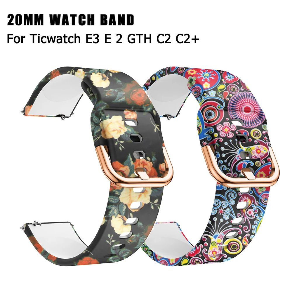 Силиконовый ремешок с принтом для смарт-часов Ticwatch E3E 2, женск...